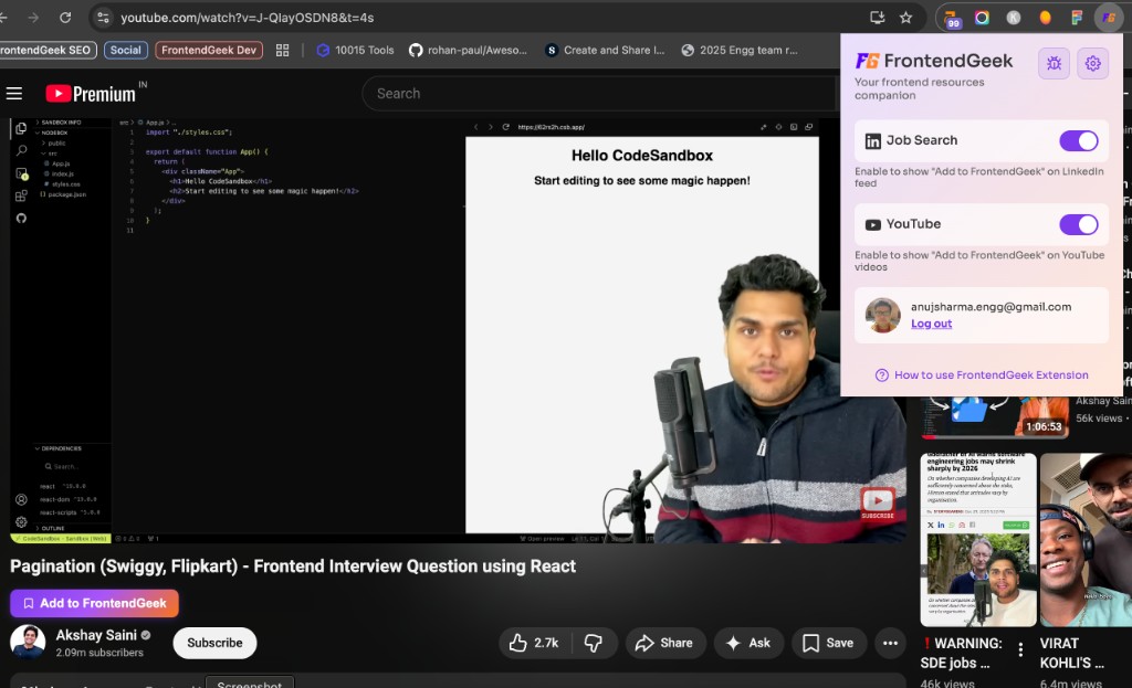 Save LinkedIn frontend jobs and YouTube resources to FrontendGeek with one click. Get started in minutes.