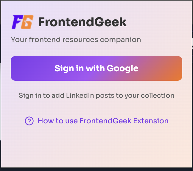 Sign in with the same account as frontendgeek.com. One account across the website and extension.